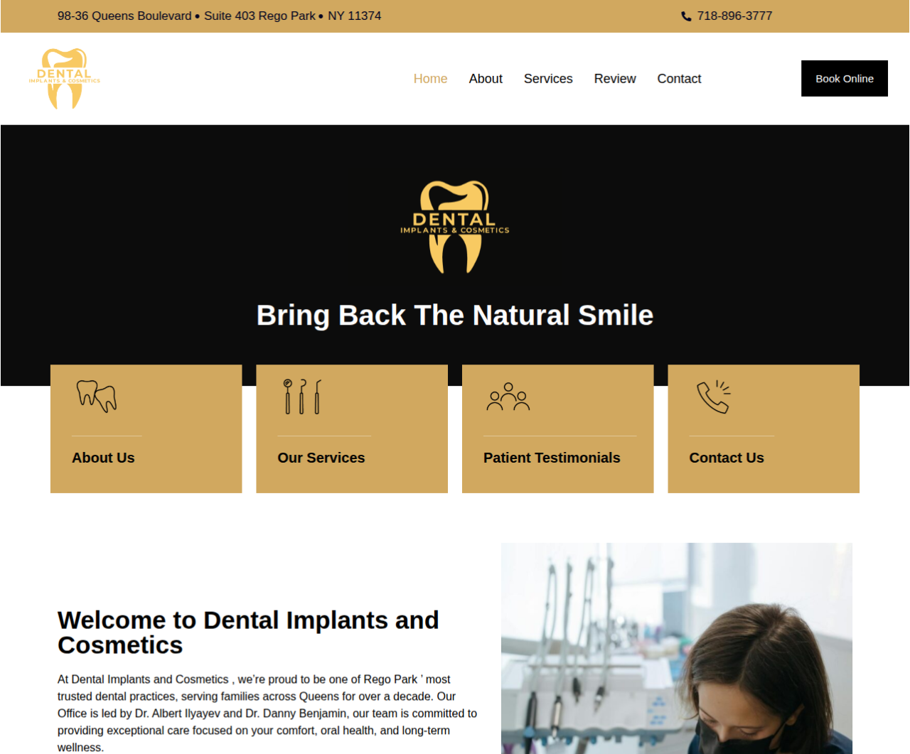Educates patients on treatment options and encourages bookings through trust-focused design and content.